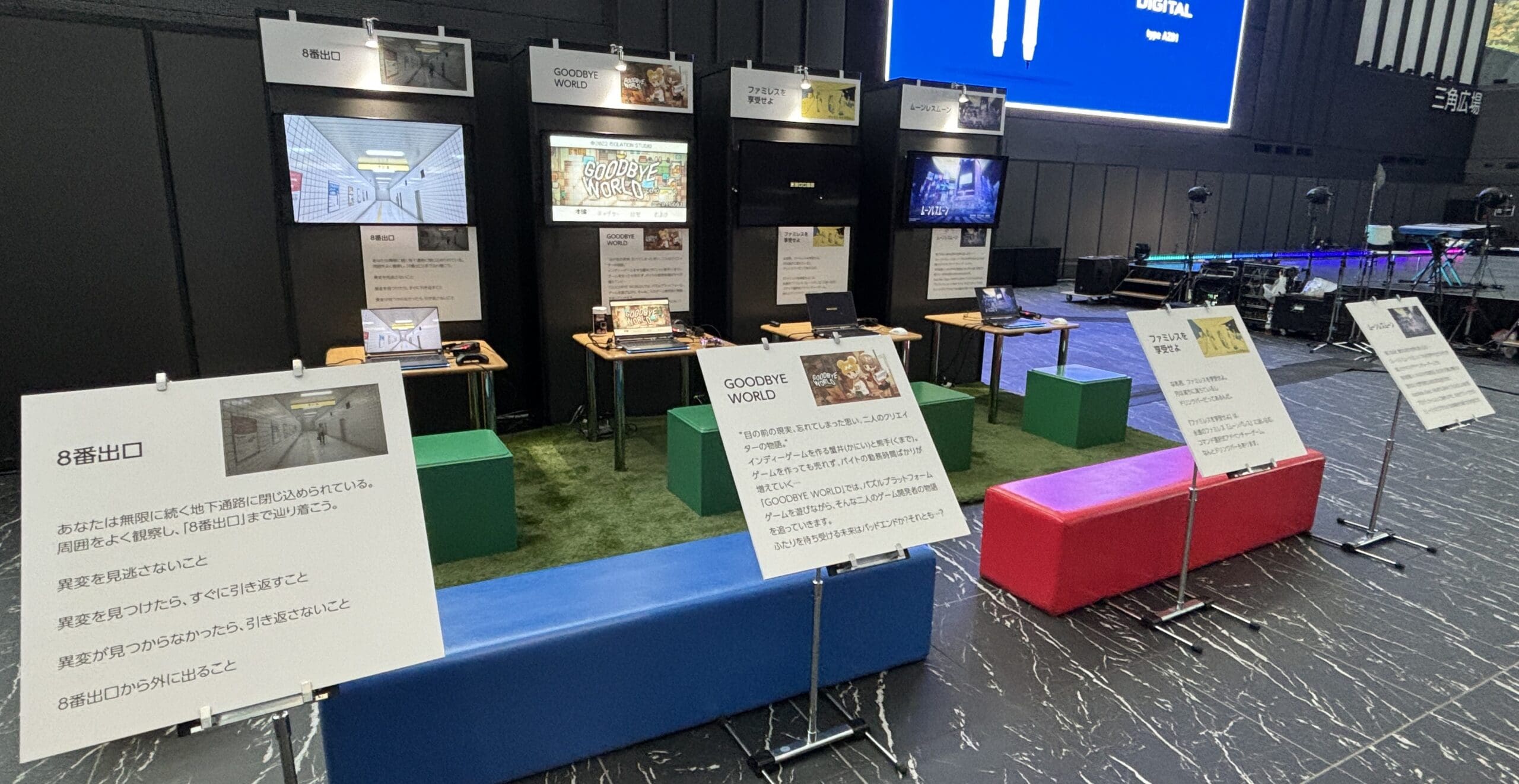 IGN JAPAN, the game and entertainment outlet operated by Sankei Digital, curated a selection of game titles focusing on “everyday life.” The experience area featured four games: “Exit 8,” nominated for the 2024 Buzzword Award and themed around escaping from an underground passage; “Enjoy the Family Restaurant,” where players solve the mysteries of a family restaurant they wander into; “GOODBYE WORLD,” a puzzle platformer that follows the story of two game developers as you play; and “Moonless Moon,” a text adventure that plays like a music video. Many visitors enjoyed trying out these games.