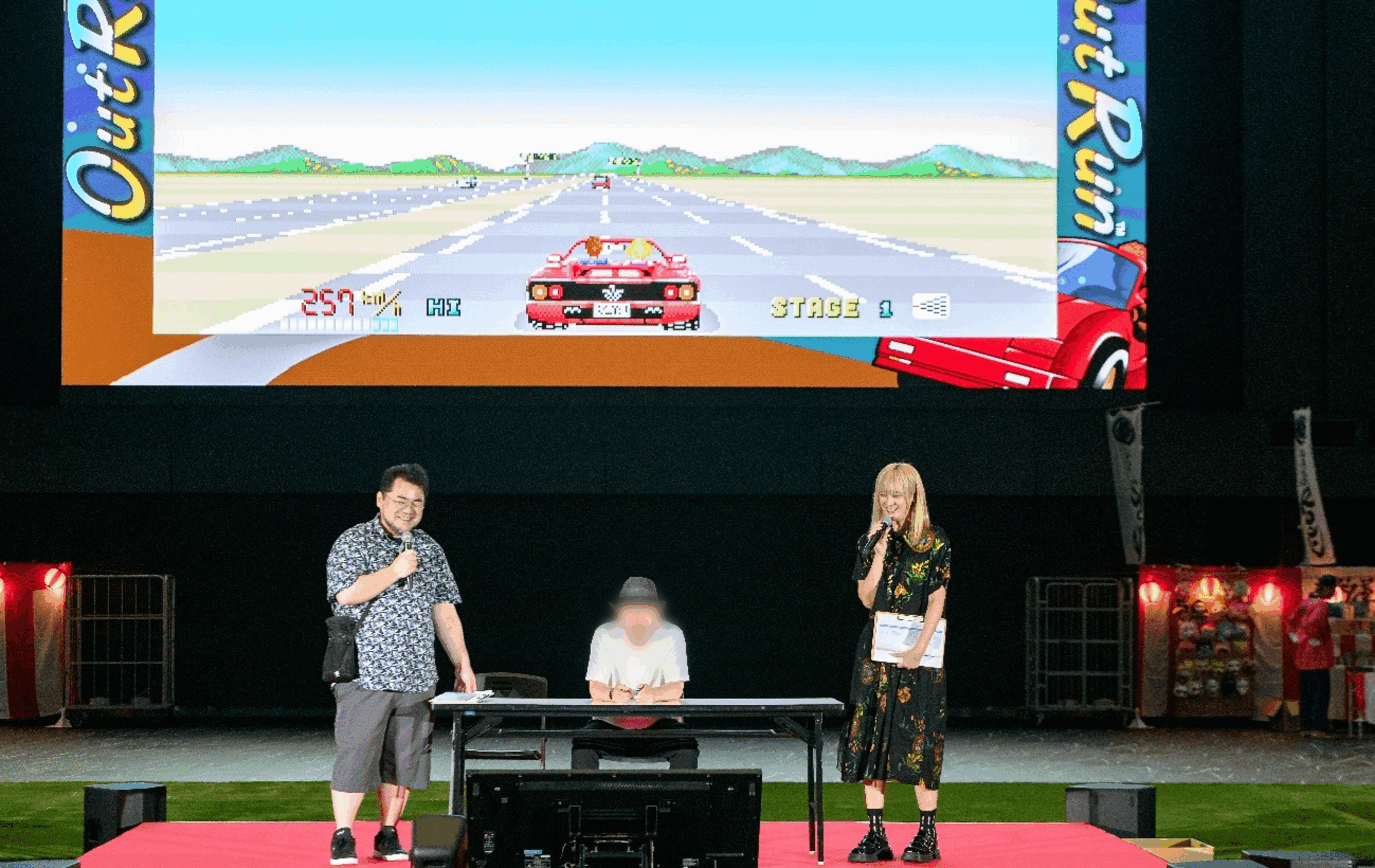 IGN JAPAN editor-in-chief, Yoshiki Chiba, and drummer/actress Natsume acted as MCs for the stage event, where they played the driving game “SEGA AGES Outrun” and the well-known arcade game “Pac-Man” with visitors. These segments were a hit with the audience.